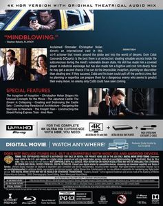 Cobb, a skilled thief who commits corporate espionage by infiltrating the subconscious of his targets is offered a chance to regain his old life as payment for a task considered to be impossible: "inception", the implantation of another person's idea into a target's subconscious. |